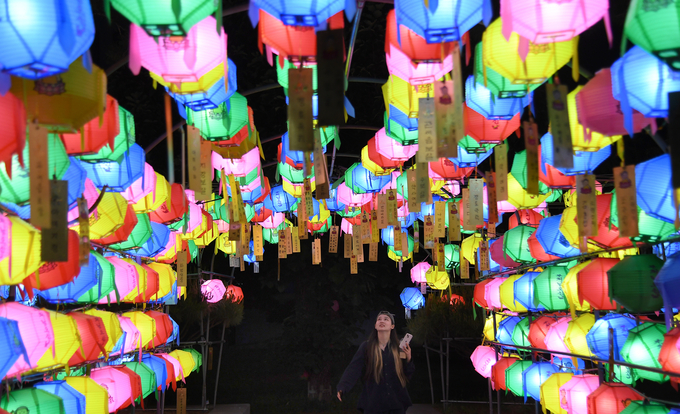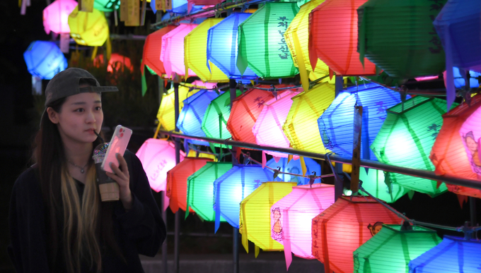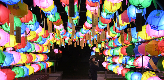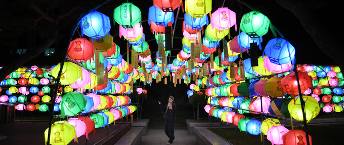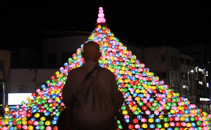 [경남도민뉴스] 석가탄신일을 나흘 앞둔 23일 저녁 경남 거창군 거창읍 거창군청 주변에 오색 연등이 매달려 있다.