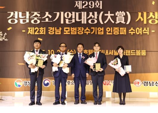 [경남도민뉴스=구인애 기자] 경상남도는 22일 오후 호텔 인터내셔널 창원에서 ‘제29회 경남중소기업대상 시상식’ 및 ‘제2회 경남 모범장수기업 인증패 수여식’을 개최했다.