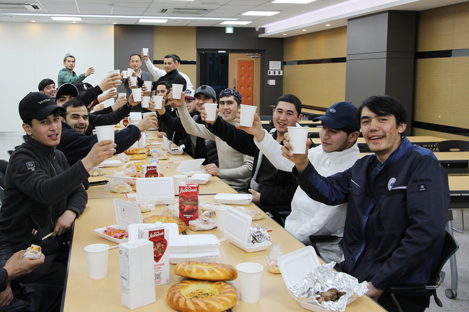 회의가 끝난 후에는 대학이 마련한 우즈베키스탄 등 중앙아시아권 전통 음식들을 함께 나누며 이야기 꽃을 피웠다. 우즈베키스탄 전문 음식점에서 직접 조리한 솜사(고기와 양파를 다져 넣어 구운 빵), 샤슬릭(양 혹은 소고기 꼬치 구이), 논(화덕에 구운 주식 빵)을 비롯해 현지에서 판매되는 음료 등 평소 거창 관내에서는 맛보기 힘든 음식들로 화기애애한 시간을 가졌다. 일부 기혼 학생은 자리를 함께 한 교직원에게 아이들의 사진을 보여주며 그리움을 달래기도 했다.