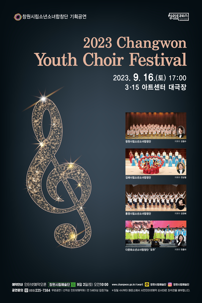 [경남도민뉴스] 창원특례시(시장 홍남표)는 오는 9월 16일 오후 5시 3·15아트센터 대극장에서 “2023 창원 청소년 합창 Festival”을 개최한다고 밝혔다.