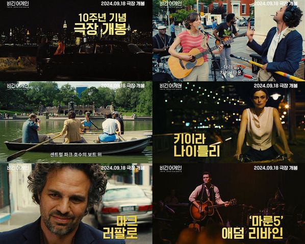 2014년에 유례없는 장기 흥행 신드롬을 일으킨 음악영화 '비긴 어게인'은 10년이라는 세월이 무색할 정도로 2024년 현재까지도 관객들의 인생영화로 오랜 사랑을 받아온 만큼 이번 재개봉을 통해 다시 뜨거운 반응을 얻을 것으로 예상된다.