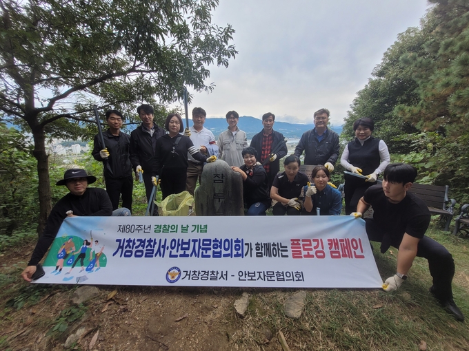 [경남도민뉴스=백형찬 기자] 거창경찰서(서장 박경준)는 21일 오후 남하면 양항리 심소정 일원에서 경비안보과 경찰관, 안보자문협의회 회원 등 20여 명이 제80주년 경찰의 날을 맞이하여 자발적으로 참여하여 함께 안전하고 깨끗한 환경을 만들기 위해 쓰레기 줍기 등 플로깅 캠페인을 실시하였다.
