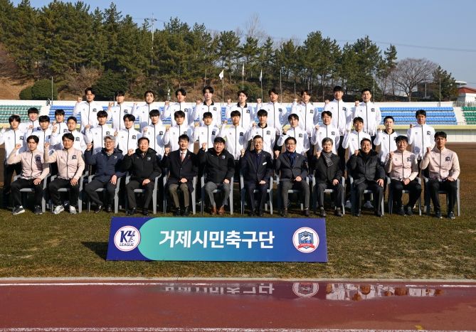 24일 거제종합운동장에서 열린 출정식에는 정석원 거제시장 권한대행을 비롯해 김동수 시의원, 거제시체육회 김환중 회장, 거제시축구협회 옥영민 회장과 선수단이 함께해 새로운 출발을 응원했다.