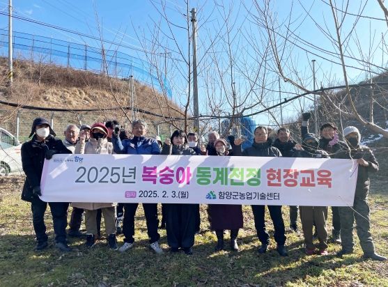 [경남도민뉴스=장광동 기자] 함양군은 2월 3일 안의면과 지곡면에서 복숭아 농가 40여 명을 대상으로 만생복숭아 동계 정지·전정 현장 실습 교육을 진행했다고 밝혔다.