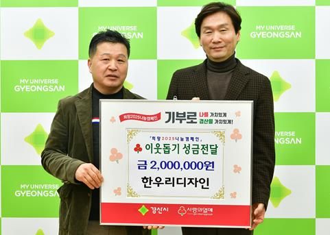 [경남도민뉴스=최민숙 기자] 한우리디자인은 4일 경산시청을 방문해 어려운 이웃을 위해 사용해 달라며 성금 200만 원을 기탁했다.