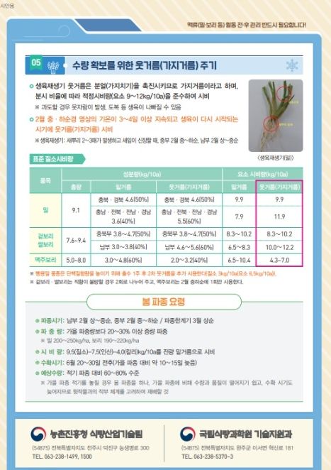 김성일 농업기술센터소장은 “고품질 맥류 생산을 위해 배수로 정비와 웃거름 적기 시용 등 세심한 관리를 부탁드린다”고 말했다.