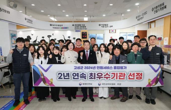 한편, 고성군은 2020년 민원서비스 종합평가 당시 최하등급인 ‘마’등급을 받은 이후 최고등급을 받기 위하여 민원실 환경개선을 통한 시설인프라를 구축하고 민원상담 활성화와 민원을 신속하게 처리하는 등의 직원들의 단합된 노력을 기반으로 하여 2022년 원스톱민원창구 우수기관, 국민행복민원실 인증 우수기관에 선정, 2023년에는 민원서비스 종합평가 ‘가’등급을 획득하는 쾌거를 이룬 바 있다.