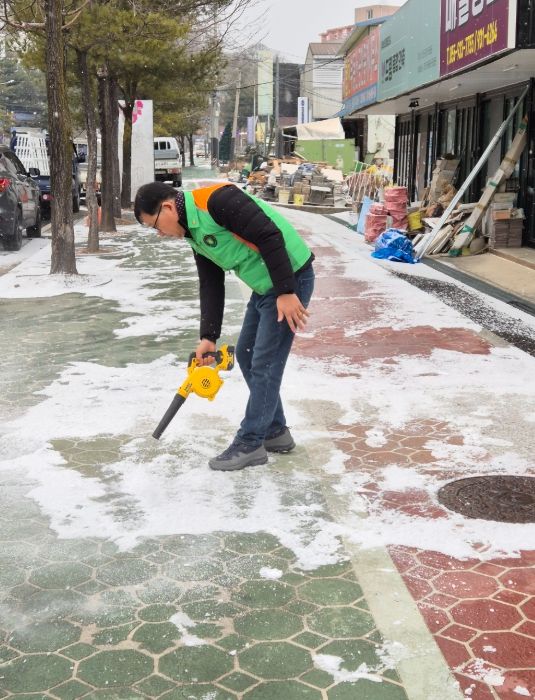 지난 6일 부터 7일 내린 눈과 함께 강추위로 미끄럼 사고가 우려되는 상황속에서 이른 아침부터 단원을 긴급 소집해, 이면도로, 마을안길, 보행로 등 제설작업을 신속하게 진행하여 안전사고 예방에 집중했다.
