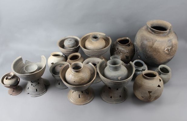 출토된 토기는 26점으로 길이 3.1m 폭 1.6m로 대형목곽묘의 유물부장공간으로 추정되는 곳에서 확인됐으며, 토기의 종류는 그릇받침 8점, 항아리 14점, 뚜껑 2점, 굽다리접시 1점, 큰항아리 1점이다.