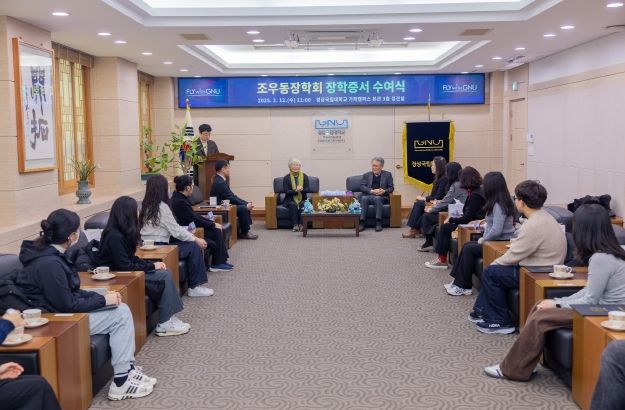 [경남도민뉴스=권중환 기자] 경상국립대학교는 2월 12일 오전 11시 가좌캠퍼스 대학본부 접견실에서 ‘2024학년도 2학기 조우동장학회 장학증서 수여식’을 개최했다.