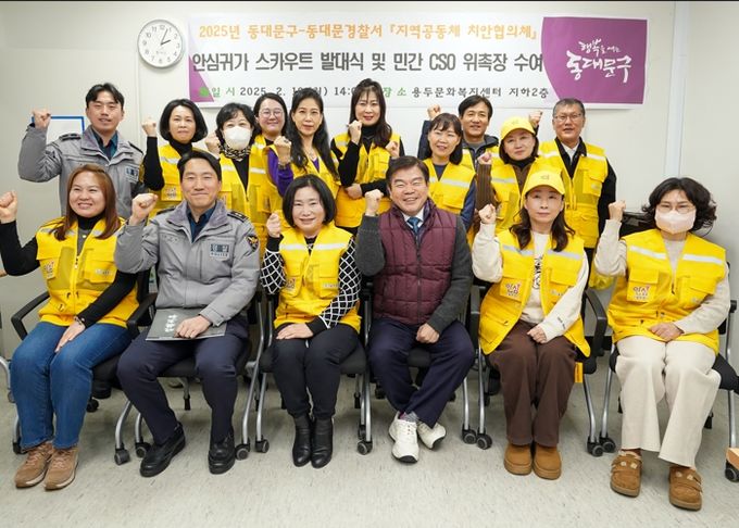 지난 10일 동대문구는 올해 선발된 안심귀가 스카우트 13명을 대상으로 발대식 및 근무 기본 교육을 진행했다. 구는 2022년부터 전국 최초로 지역 경찰서와 협업해 스카우트 대원들을 민간 순찰대원으로 위촉했다. 올해도 대원들은 경찰서와 협력해 지역 안전을 책임지는 민간 순찰대원 역할을 수행할 예정이다.