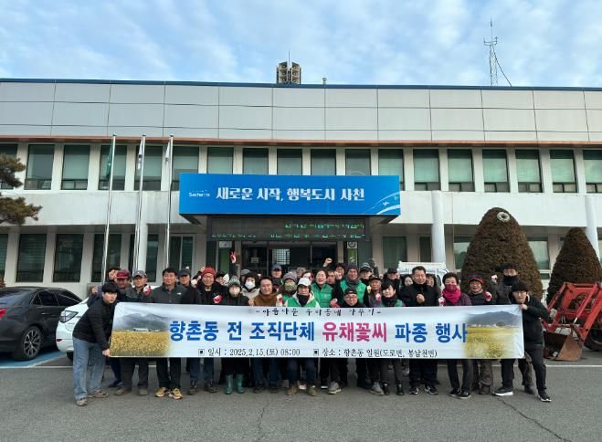 향촌동 대로변 및 봉남천 일원에 모두가 힐링할 수 있는 야외 공간 조성에 중점을 맞춘 이번 사업은 향촌동 전 조직단체와 주민이 참여해 320kg 유채꽃씨 파종, 퇴비 및 밑거름 살포 등을 진행했다.