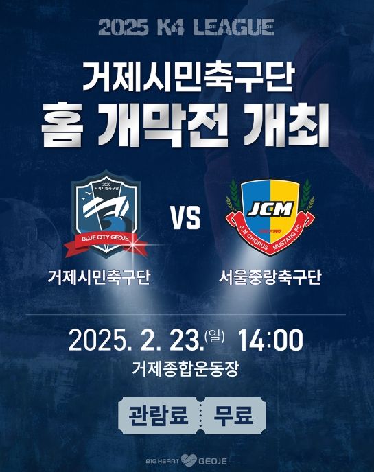 [경남도민뉴스=김부경 기자] 거제시민축구단이 오는 23일 오후 2시 거제종합운동장에서 서울중랑축구단과의 홈 경기를 시작으로 2025년 K4리그 새 시즌을 맞이한다.
