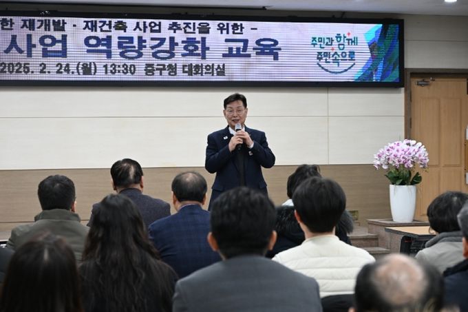 김제선 중구청장은 “이번 교육은 공약사항인 정비사업 신속지원센터 운영의 일환으로, 관계자들의 역량을 강화해 중구 내 정비사업을 원활하고 신속하게 추진하기 위해 마련됐다.”라며, “앞으로도 지속적인 교육과 지원을 통해 사업 추진에 따른 주민 불편을 최소화할 수 있도록 노력하겠다.”라고 말했다.