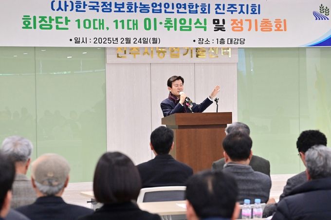[경남도민뉴스=권중환 기자] 정보화농업인연합회 진주지회는 24일 진주시농업기술센터에서 회원 80여 명과 조규일 진주시장, 내빈 등 초청인들과 함께 제10대, 11대 회장 이취임식을 개최했다.