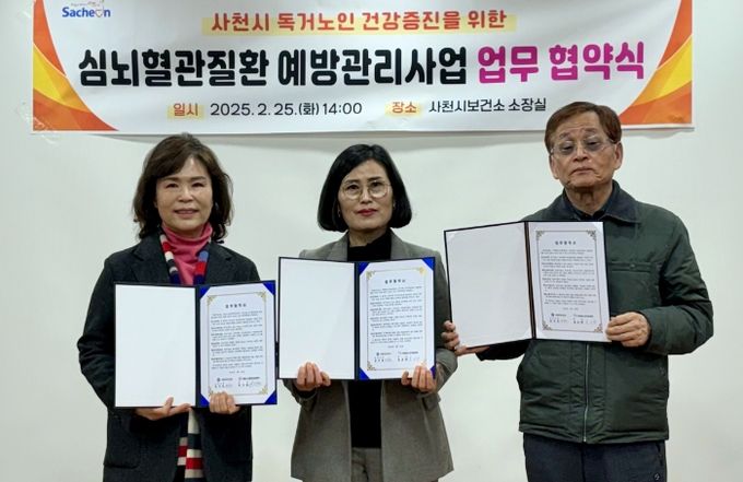 [경남도민뉴스=변정형 기자] 사천시보건소는 독거노인의 건강증진을 위해 노인맞춤돌봄서비스 수행기관들과 심뇌혈관질환 예방관리사업 추진을 위한 업무협약을 체결했다고 25일 밝혔다.