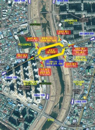 가설교량 전면 개통에 따라 일부 교통 흐름도 변경된다. 기존에 도마동 방향 가설교량 부분 개통으로 인해 임시 허용됐던 태평교 버드내 네거리 좌회전 및 도마교 도마 네거리 좌회전이 금지된다.