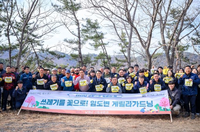[경남도민뉴스=김부경 기자] 남해군은 임도변에 방치된 쓰레기를 수거하고 무단 쓰레기 투기를 방지하기 위해 지난 2월 27일 남면 소재 임도에서 ‘게릴라가드닝’ 행사를 추진했다.