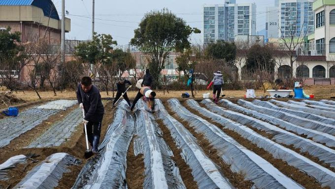 이에 따라 지난 2월 26일 거름 내기, 객토, 이랑 작업을 실시해 사전 준비를 마쳤으며, 1일에는 씨감자 300kg을 구입해 파종하고 비닐 멀칭 작업을 진행했다.