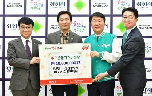 [경남도민뉴스=최민숙 기자] iM뱅크 경산영업부 DGB사회공헌재단는 6일 경산시청을 방문하여 따뜻한 나눔을 실천하고자 성금 1,000만원을 기탁했다.