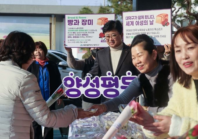 [경남도민뉴스=도문호 기자] 대전 대덕구는 7일 국제 여성의 날을 앞두고 출근하는 대덕구 직원과 대화산업단지에서 근무하는 직원 및 지역 주민들에게 빵과 장미꽃을 나눠줬다고 밝혔다.