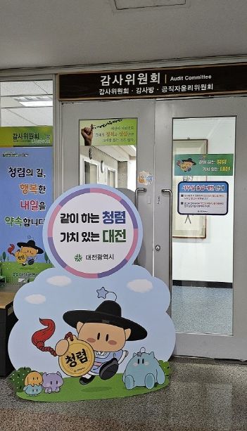 공무원의 청렴 의식과 실천력을 높이기 위해 전 부서 출입문에 청렴 슬로건 ‘같이하는 청렴, 가치 있는 대전’을 부착했다.