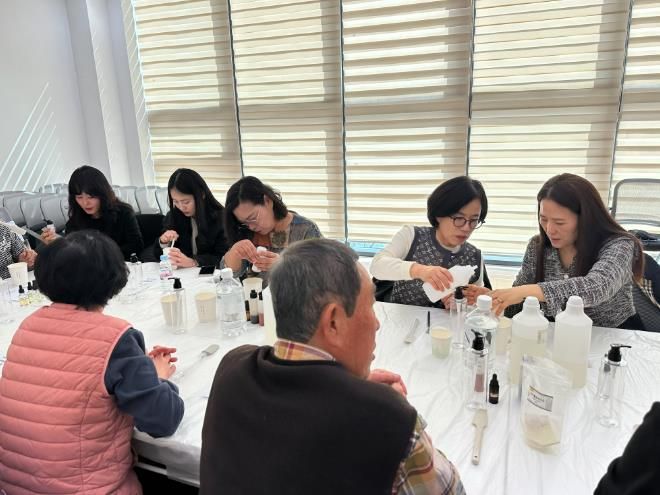 또한, 어르신들이 직접 천연 샴푸, 디퓨저, 폼클렌징 등 다양한 프로그램을 체험하면서 건강한 삶의 활력을 되찾을 수 있도록 지원한다.