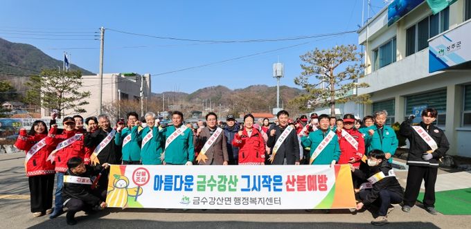 조형철 금수강산면장은 “오늘 나무 나누어주기 행사와 산불예방 홍보 캠페인을 통해 산림의 중요성을 다시 한번 더 되새기고, 특히 산림인접지역에서 논·밭두렁 태우기, 영농폐기물 및 쓰레기 소각행위 일절 금지 등을 위한 지속적인 홍보를 통해 산불예방에 최선을 다하겠다”고 말했다.
