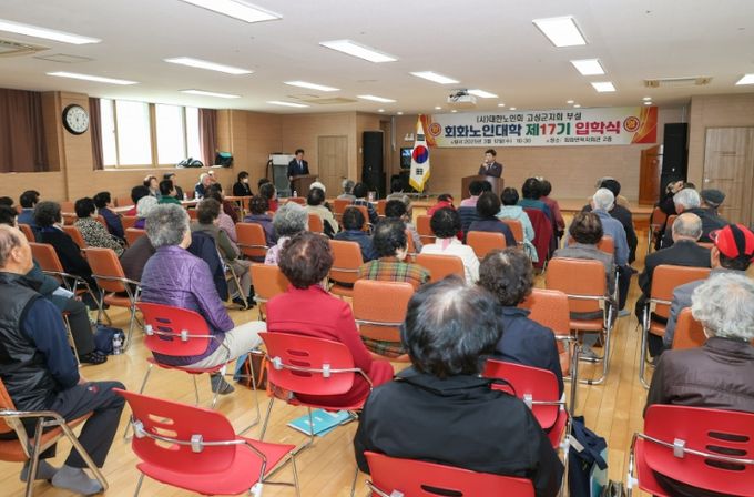 [경남도민뉴스=김태수 기자] (사)대한노인회 고성군지회(지회장 최종림)에서는 3월 12일 제17기 고성군 회화노인대학 입학식을 개최했다. 이날 행사에는 60명의 신입생과 내빈, 관계자들이 참석해 배움의 새 출발을 축하했다.
