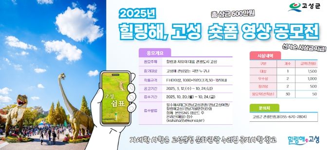 [경남도민뉴스=김태수 기자] 고성군이 힐링과 치유의 대표 관광도시로서의 매력을 널리 알리기 위해 ‘2025년 힐링해, 고성 숏폼 영상 공모전을 실시 한다고 밝혔다.