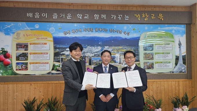 [경남도민뉴스=백형찬 기자] 거창교육지원청(교육장 신종규)과 거창승강기고등학교는 3월 12일(수) 협약형 특성화고등학교 육성을 위한 협약서를 체결하였다. 이날 협약식에는 신종규 교육장과 이재운 거창군 군의회 의장, 이재현 거창승강기고등학교 교장과 교감, 교육지원과장 및 장학사가 참석한 가운데 협약서를 체결하였다.