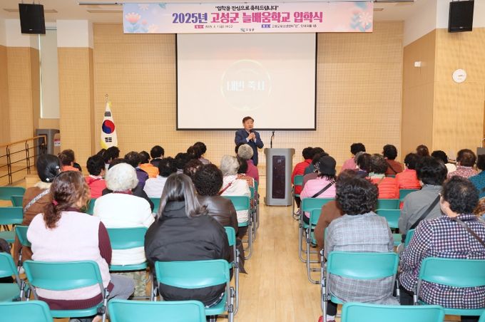 [경남도민뉴스=김태수 기자] 고성군의회 최을석 의장은 지난 7일, 고성군청소년센터“온”모이자홀에서 개최된'2025년 고성군 늘배움학교 입학식'에 참석해 배움의 열정 가득한 입학생들을 축하하고, 격려했다.