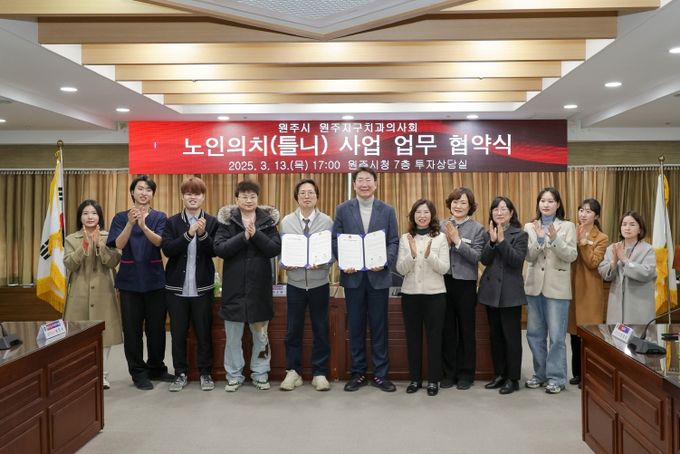 [경남도민뉴스=류종길 기자] 원주시는 이달 13일 ‘2025년 노인의치(틀니) 사업’의 원활한 추진을 위해 원주지구 치과의사회(회장 최승태)와 업무협약을 체결했다.
