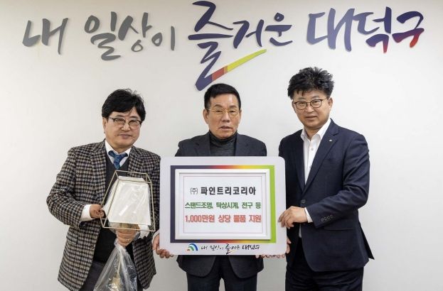 [경남도민뉴스=도문호 기자] 대전 대덕구는 17일 ㈜파인트리코리아로부터 장애인복지시설 지원을 위한 스탠드 조명 등 1000만원 상당의 물품을 기탁받았다고 밝혔다.