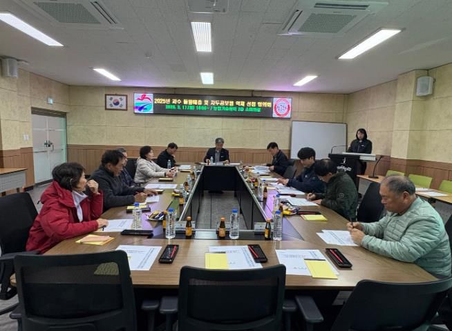 [경남도민뉴스=백형찬 기자] 거창군은 지난 16일 농업기술센터에서 사과, 포도, 복숭아 등 주요 품목 농업인 대표와 관계 공무원 등 11명이 참석한 가운데 2025년 과수 돌발해충 및 자두곰보병 방제 약제 선정 협의회를 개최했다.