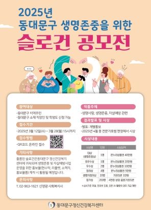 [경남도민뉴스=윤장희 기자] 서울 동대문구는 자살 예방의 중요성을 알리고 생명 존중 문화를 확산하기 위해 ‘2025년 생명 존중 슬로건 공모전’을 개최한다.