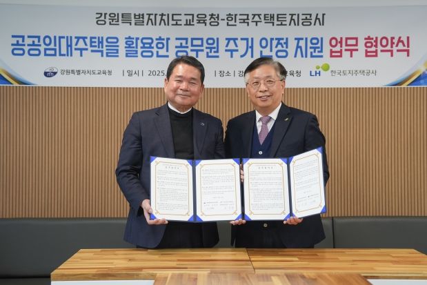[경남도민뉴스=류종길 기자] 강원특별자치도교육청은 18일 16시 도교육청에서 한국토지주택공사 강원지역본부와 공공임대주택을 활용하여 도내 순환 근무하는 공무원 주거 안정을 지원하는 업무협약을 체결했다.