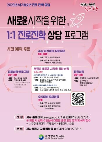 [경남도민뉴스=도문호 기자] 대전 서구가 학부모와 청소년을 위한 2025년 진로·진학 상담 프로그램을 본격 운영한다고 이달 19일 밝혔다.
