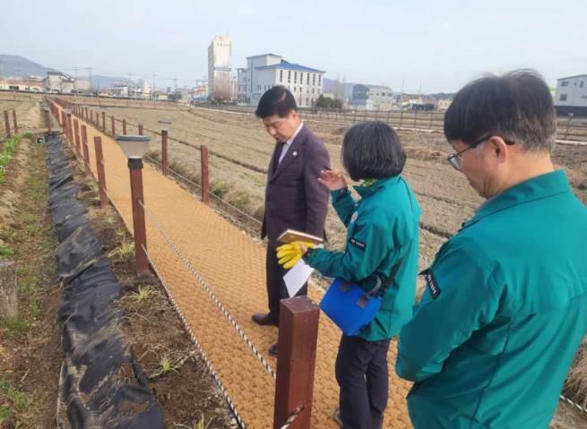 [경남도민뉴스=김태수 기자] 고성군은 3월 18일 봄꽃 축제 준비 중인 기월안뜰경관농업지구 현장을 방문하여 사전 안전점검과 청보리와 유채 생육 상황 등을 살폈다.