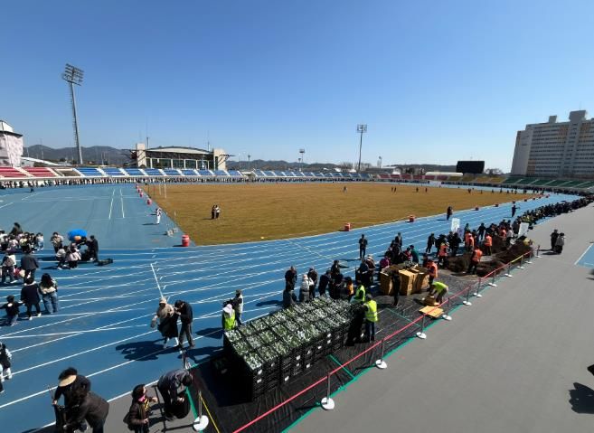 이날 행사는 사천종합운동장, 삼천포종합운동장, 곤양시장 앞 주차장 등 3개 장소에서 진행됐으며, 4000여 명의 시민에게 대봉, 단감(태추), 천리향, 석죽 등 총 2만 1000본의 묘목을 배부했다.