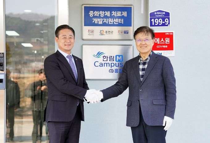 [경남도민뉴스=표재민 기자] 홍천군에 있는 홍천국가항체클러스터 중화항체 치료제 개발지원센터 내에 지산학협력 강화를 위한 한림대학교 한림마이크로캠퍼스(M-Campus)가 3월 20일 개소했다.