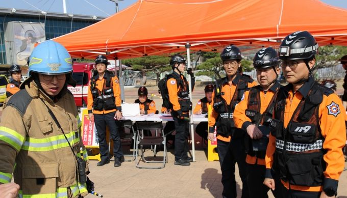 [경남도민뉴스=최민숙 기자] 김천소방서는 3월 21일 오후 2시, 김천시 종합스포츠타운 내 김천실내체육관에서 대형화재 발생을 가정한 불시 긴급구조통제단 가동훈련을 실시했다.