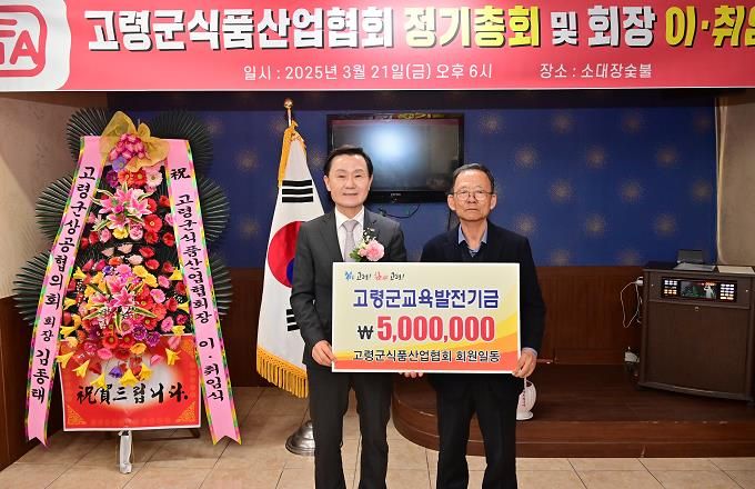 [경남도민뉴스=최민숙 기자] 고령군식품산업협회는 지난 3월 21일 고령군식품산업협회 2025년 정기총회에서 고령군 교육발전기금 500만원을 기탁했다.