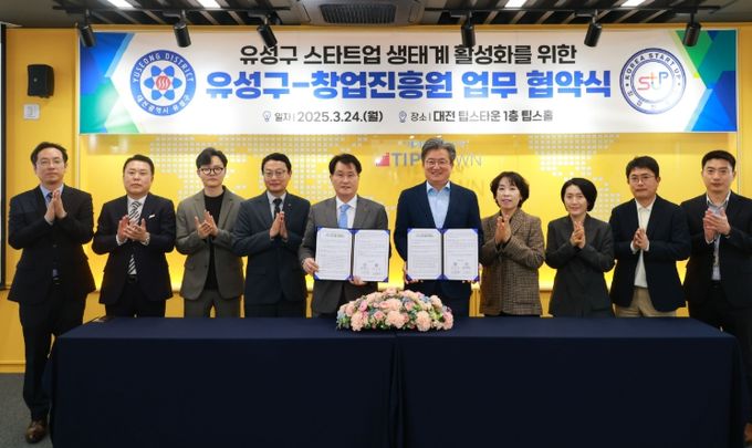 [경남도민뉴스=도문호 기자] 대전 유성구와 창업진흥원이 24일 대전 팁스타운에서 업무협약을 체결하고 지역 스타트업 생태계 활성화에 나선다.
