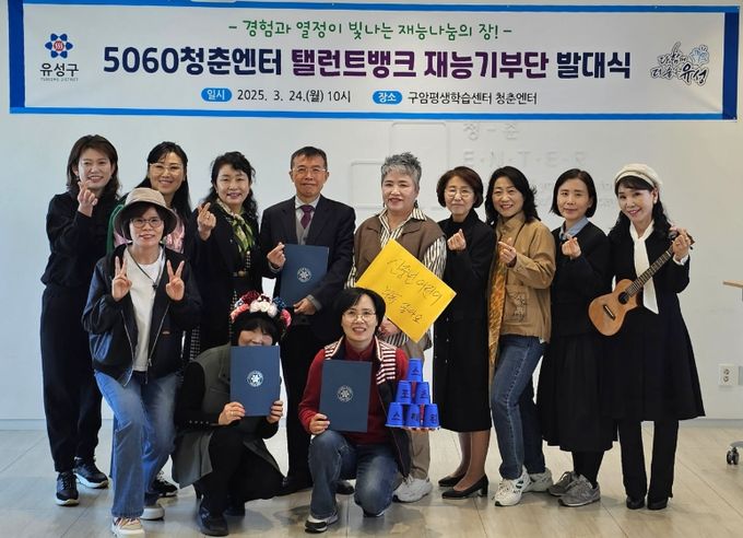 [경남도민뉴스=도문호 기자] 대전 유성구는 24일 구암평생학습센터 청춘엔터에서 신중년 재능기부단 ‘5060청춘엔터 탤런트 뱅크’ 발대식을 개최했다.