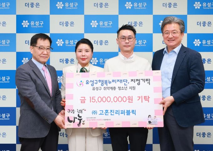 [경남도민뉴스=도문호 기자] 대전 유성구는 24일 ㈜고혼진리퍼블릭(대표 고양필)이 후원금 1,500만 원을 유성구행복누리재단에 기탁했다고 밝혔다.