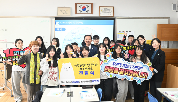 [경남도민뉴스=백형찬 기자] 거창군은 25일 2025년 꿈키움바우처 지원사업의 신규 대상자인 중학교 1학년 청소년을 대상으로 꿈키움바우처카드 전달식을 개최했다.
