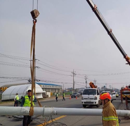 [경남도민뉴스=박만수 기자] 25일 오후 충청남도 천안시 성환읍에서 도로 한가운데 신호등이 넘어져 교통 흐름에 큰 장애를 초래하는 사고가 발생했다.