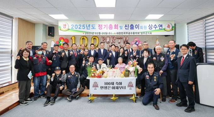 [경남도민뉴스=최민숙 기자] 성주군 무공수훈자회는 3월 26일 성주군보훈회관 대회의실에서 2025년 정기총회와 함께 100세 회원 상수연을 개최했다.