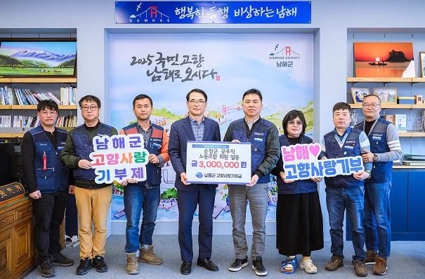 이장근 남해군 공무직노조 지부장은 “이번 상호 기부에 자발적으로 참여해 주신 조합원들께 깊이 감사드린다.”며 “앞으로도 양 지역에서 고향사랑기부 문화가 더욱 확산되길 바란다.”고 밝혔다.